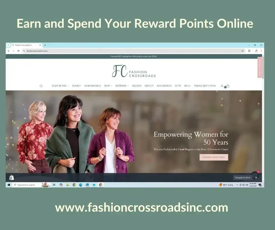 Fashion Crossroads has been empowering women by providing a great place to shop for 50 years! We focus on professional clothing and dressed up casual styles for women. We offer brands that fit a real woman's body and go above and beyond to provide quality that lasts. A member of the Better Business Bureau and the Casper Chamber of Commerce, this second generation, woman owned, family business has proven itself as one with great inventory and integrity. We believe providing women with a great place to shop improves their lives, and we believe in empowering, encouraging, and giving back. Our partnership with Dress For Success is just one of the many ways we are striving to improve our Casper community. We offer layaway with 25% down and 90 days to pay. We also offer a fabulous loyalty program where our customers earn $10 for every $200 spent. Shop in store or online at www.fashioncrossroadsinc.com